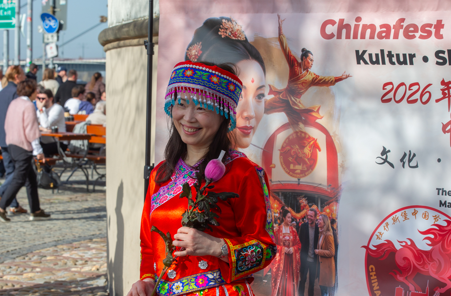 Am Internationalen Frauentag wurde der Düsseldorfer Burgplatz zur Kulisse für eine beeindruckende Zeitreise durch die chinesische Kultur. Der Verein Chinesische Frauen in Deutschland (VcfG) präsentierte eine Modenschau, die die historische Vielfalt und textile Kunstfertigkeit Chinas in den Mittelpunkt rückte. 56 Gewänder für 56 Nationalitäten Insgesamt 56 Frauen präsentierten die traditionellen Trachten der 56 staatlich anerkannten Volksgruppen Chinas.